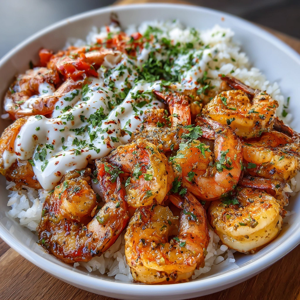 Now it’s time to bring it all together! Serve the cooked shrimp over a generous bed of rice. Drizzle that creamy Yum Yum Sauce on top, letting it cascade over the shrimp. Finally, sprinkle with chopped green onions for a fresh crunch. Your Spicy Shrimp Rice Bowl is ready to be devoured!