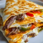 The aroma of sizzling steak dances in the air, mingling with the sweet fragrance of caramelized onions and bell peppers, creating an atmosphere that wraps around you like a warm embrace. As the quesadilla sizzles in the skillet, the anticipation grows—it’s a delightful promise of flavor wrapped in a crisp, golden tortilla. With every second that passes, I can already envision the satisfying crunch as I bite into this cheesy, savory treasure, its gooey goodness spilling out with each delicious mouthful.
