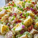 Imagine digging into this dish on a sunny afternoon, perhaps at a backyard barbecue or a backyard picnic, where each forkful transports you to that cozy steakhouse setting. The potatoes, soft yet holding a slight bite, mingle seamlessly with the crunch of celery, the bite of red onion, and the saltiness of crumbled bacon. Add in the luscious creaminess of the dressing, and you’ve created a side that holds its own and can easily steal the spotlight. This isn’t just a potato salad; it’s a celebration of flavors and textures that elevates any meal.