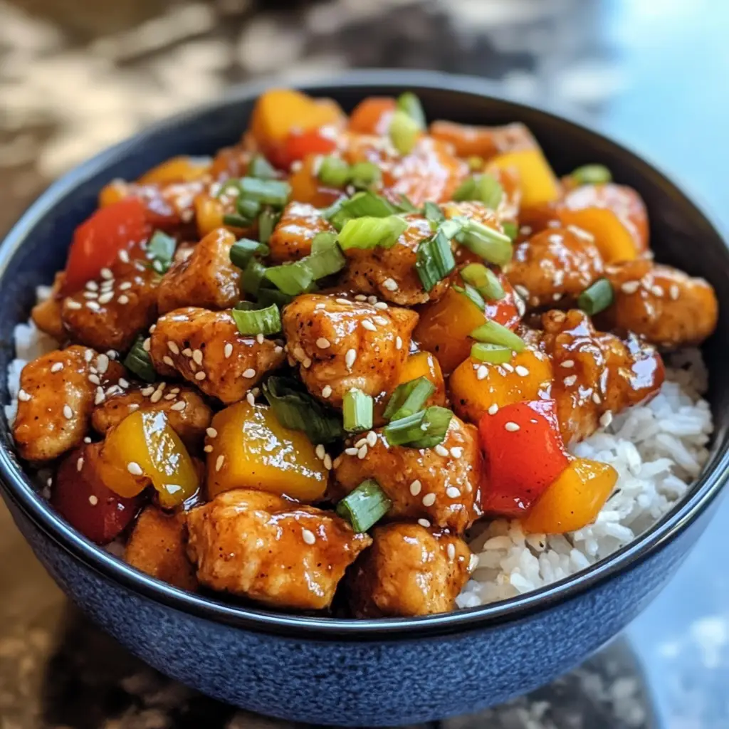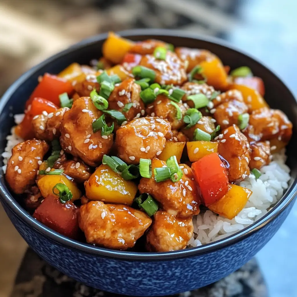 Sweet and Sour Chicken Bowls are a delightful and easy-to-make dish that combines tender chicken with a tangy sauce, served over rice and topped with fresh vegetables.