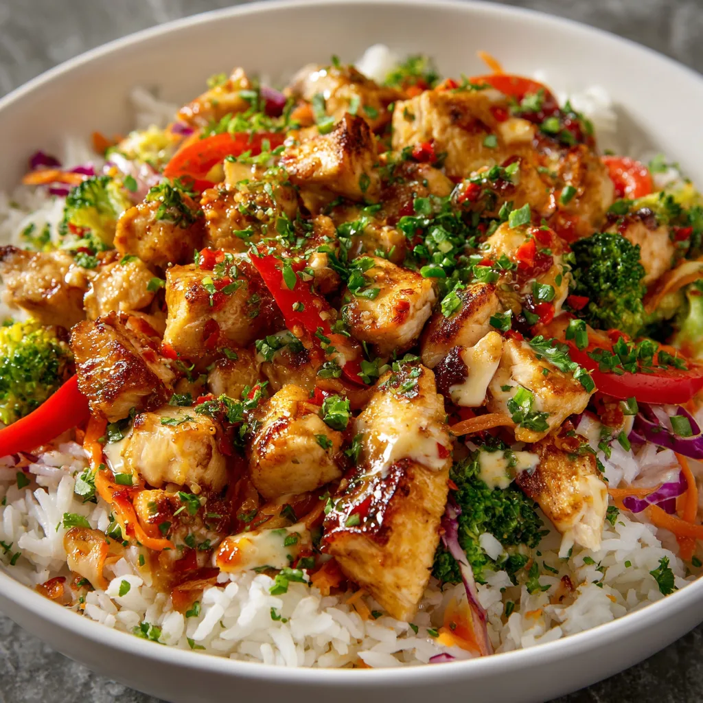 Introduction to Sweet Chili Chicken Bowl with Coconut Lime Drizzle