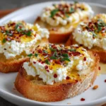 Sweet and Spicy Whipped Feta Crostini with Hot Honey Magic Delights!