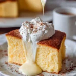 Each forkful delivers not only a taste but an experience—a delightful cascade of creamy, dreamy textures that tease your senses. The cake sits regally under a fluffy crown of whipped cream, speckled with a dusting of cinnamon that evokes the gentle fragrance of a home in autumn. This isn’t merely dessert; it’s an invitation to gather around the table, share stories, and create cherished memories. The very essence of Three Milk Cake invites you to indulge, to celebrate, and to relish life’s sweetest moments.