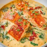 Indulging in Tuscan Salmon means enjoying a dish that’s both comforting and stunningly flavorful. The combination of fresh, high-quality ingredients elevates this recipe, making it perfect for an intimate dinner or a festive occasion. The creamy sauce with a touch of richness from the Parmesan and the scatter of sun-dried tomatoes creates a taste sensation that balances indulgence and freshness beautifully.